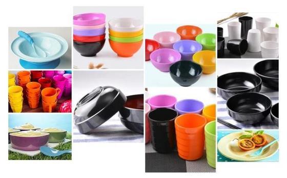É amplamente utilizado na produção de vários tipos de louças de melamina, incluindo: